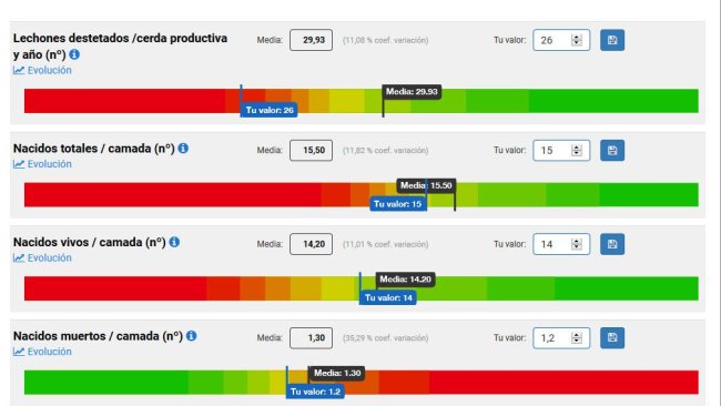 Herramienta para comparar los datos reproductivos de tu granja con la base de datos BDporc y ver la evolución de los parámetros reproductivos de BDporc