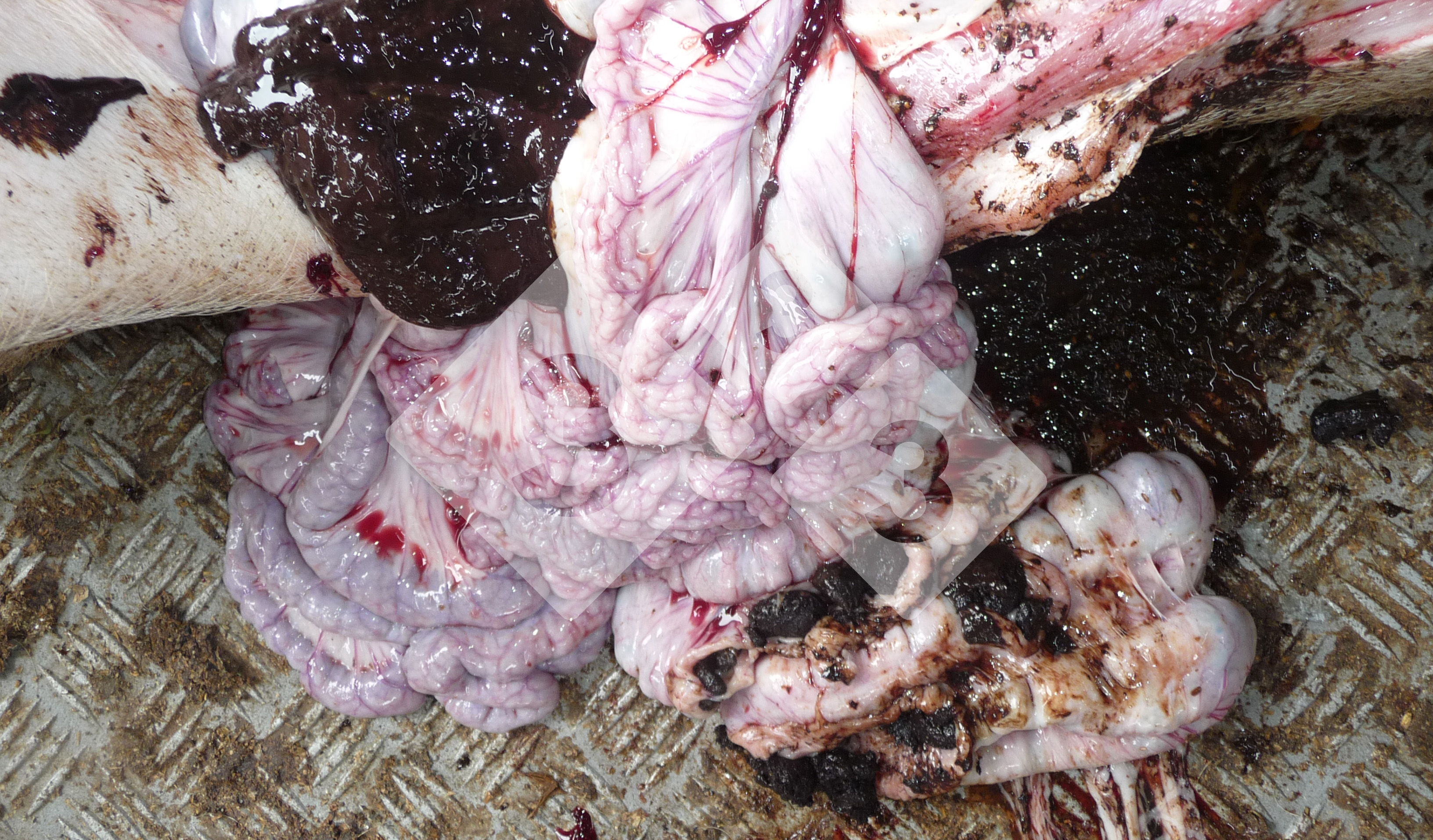 Posibles causas: Clostridium perfringensÚlceras gástricasIleitisDisentería porcinaTrombocitopenia púrpuraTorsión de estómago e intestinoSíndrome hemorrágico intestinal
