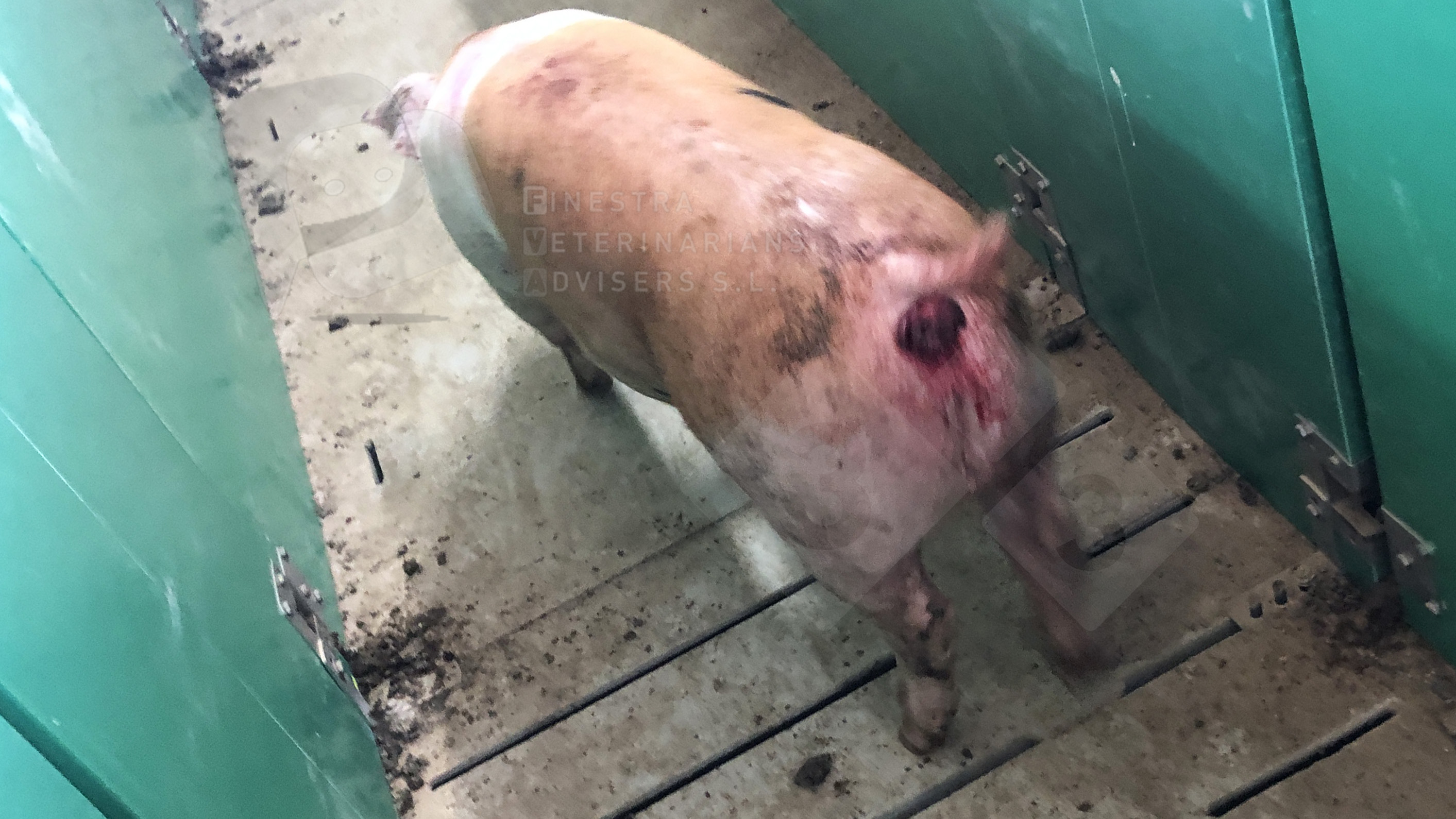 En el caso de multíparas, el prolapso de la vagina y/o el recto a veces ocurre como consecuencia de la flacidez y la relajación del canal de parto en cerdas cercanas al parto. El prolapso de la vagina generalmente ocurre primero y es seguido por el prolapso del recto.