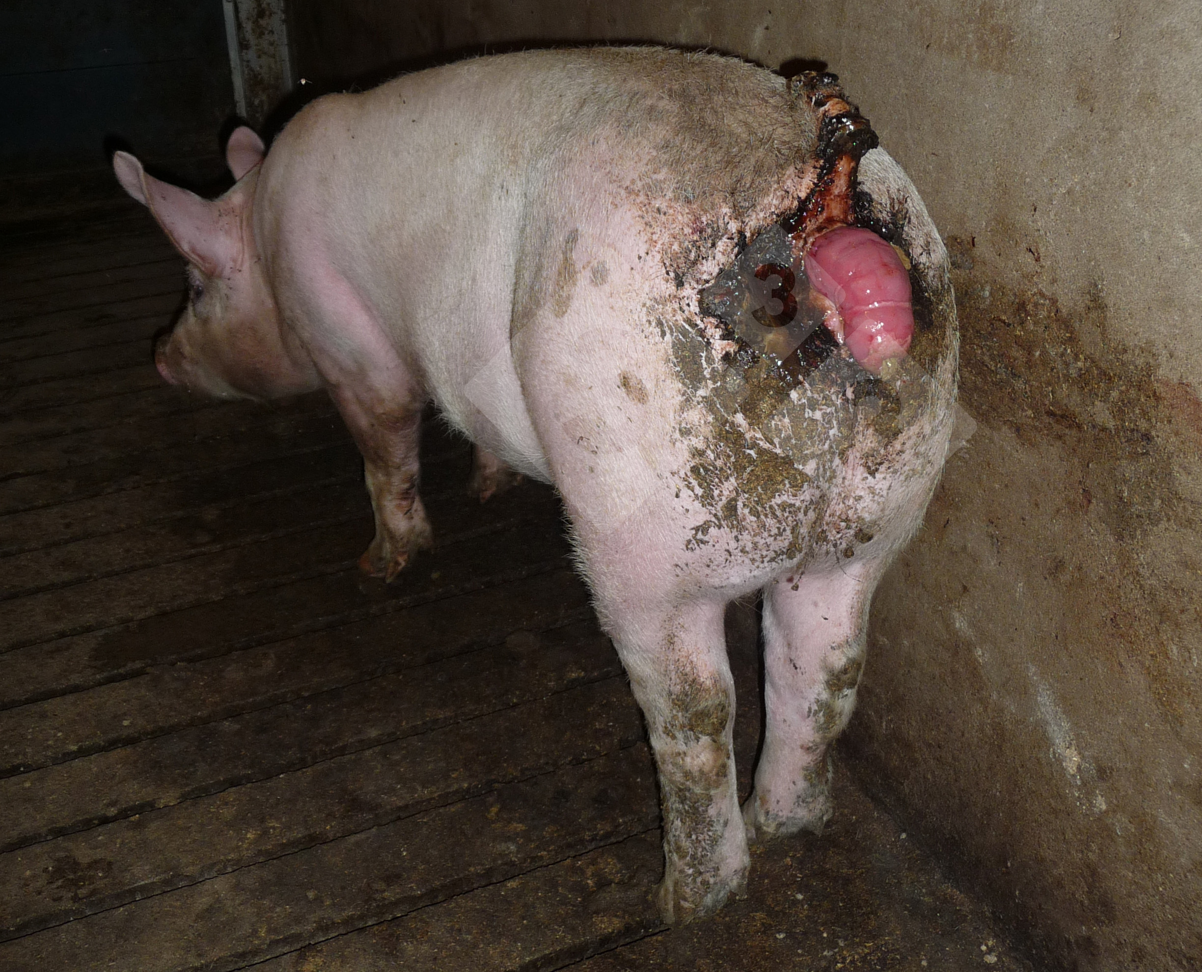 Esta lesión es bastante frecuente en cerdos. Hay varias causas como la diarrea, las patologías respiratorias que causan presión abdominal, los alojamientos fríos, los suelos resbaladizos, la sobredensidad en los corrales o la penetración anal.