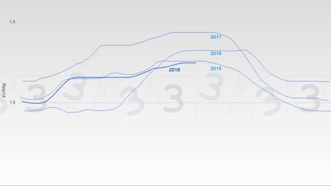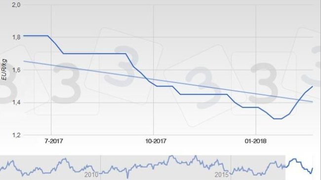 A fecha de hoy, con el ejercicio prácticamente cerrado, la media anual (aritmética, que no ponderada) se sitúa en 1,26 €/Kg vivo.