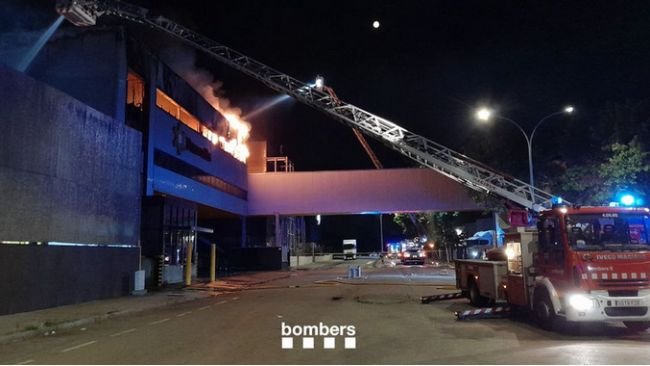 El incendio afectó gravemente a un conjunto de tres naves de una empresa cárnica y la segunda planta de otra nave vecina.