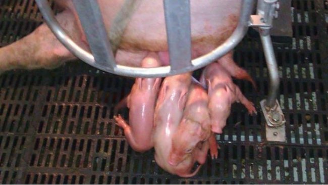 Abbildung 1: Ferkel zum Teil im Nest eingesperrt