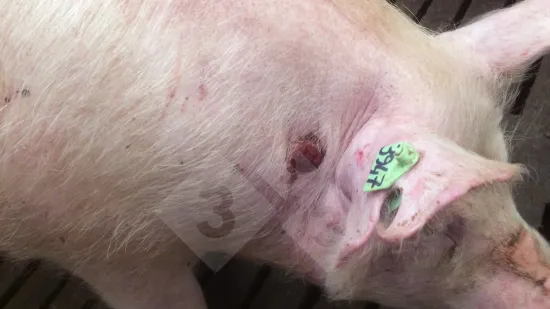 Viele Sauen haben einen Abszess seitlich am Hals. Was ist die Ursache dieser Läsion?