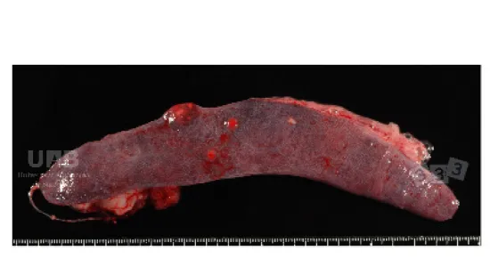 Diese Läsion wurde festgestellt, nachdem das Tier unter wiederholten Fieberepisoden gelitten hatte. Was sind die möglichen Ursachen?