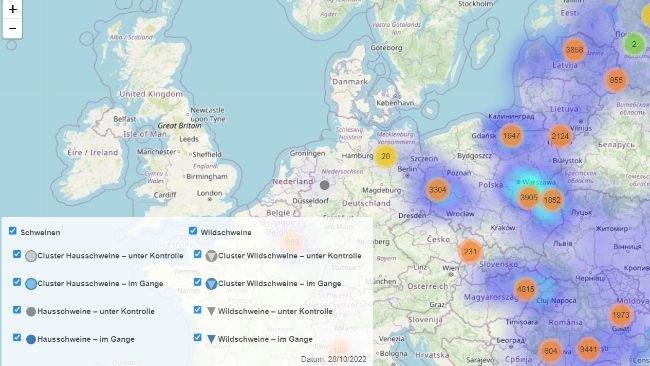 Haben Sie sich schon die neue Karte mit den Ausbrüchen der Afrikanischen Schweinepest angesehen? Gibt es in Ihrer Gegend irgendwelche Punkte?