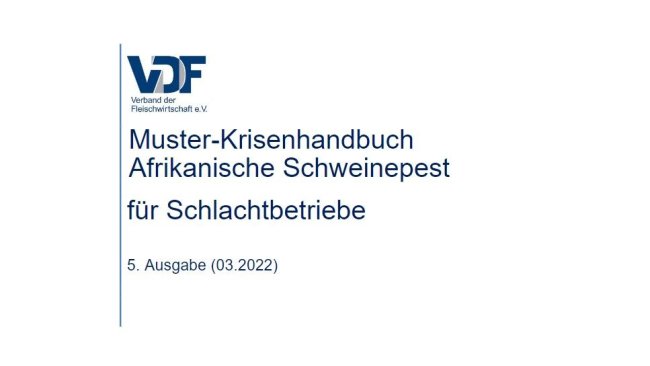 Vor dem Hintergrund der umfangreichen Neuregelungen im Bereich des Tierseuchenrechts musste das „Muster-Krisenhandbuch Afrikanische Schweinepest für Schlachtbetriebe“ einer umfangreichen Überarbeitung unterzogen werden.