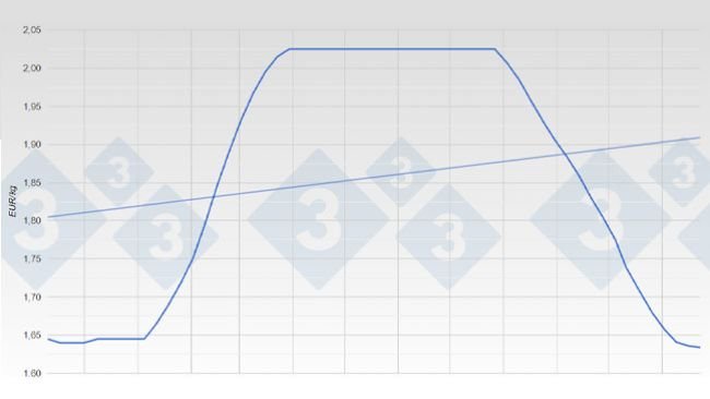 Evolución del precio del cerdo en el mercado Mercolleida (España).