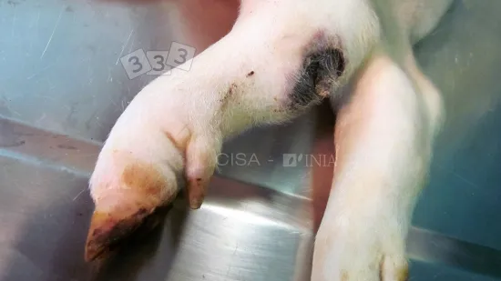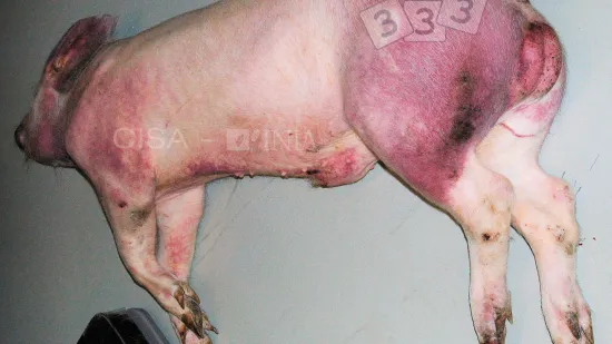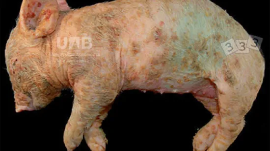 La mayoría de los cerdos de este corral tienen manchas oscuras en la piel, ¿cuál puede ser la causa?
