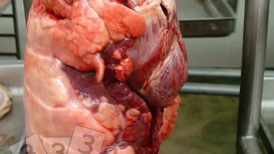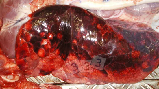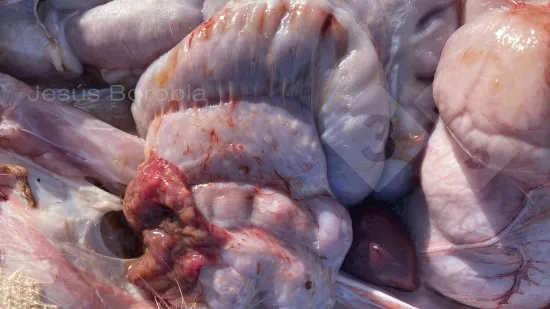 Han aumentado las toses y los retrasados en la granja. ¿Cuál es la causa más probable de esta lesión?