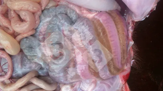 Hay un aumento de la mortalidad por muerte súbita en cerdos de engorde. Los cerdos post-mortem presentan las asas intestinales distendidas por gases, tienen un color púrpura intenso y están llenas de líquido con sangre abundante. ¿Cuál es la causa?