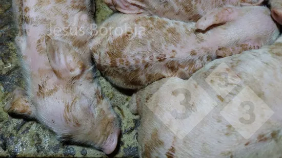 Muchos lechones de distintas camadas muestran un eritema cutáneo. ¿Cuál es la causa de esta condición?