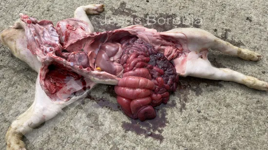 Algunas cerdas y cerditas han muerto repentinamente durante los últimos meses sin signos clínicos aparentes. Hay hemoperitoneo y esplenomegalia en necropsia. ¿Cuál es la causa?