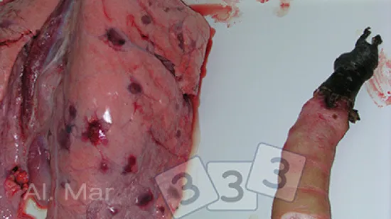 ¿Cuál es la causa de estas lesiones cutáneas en la cara de este lechón?