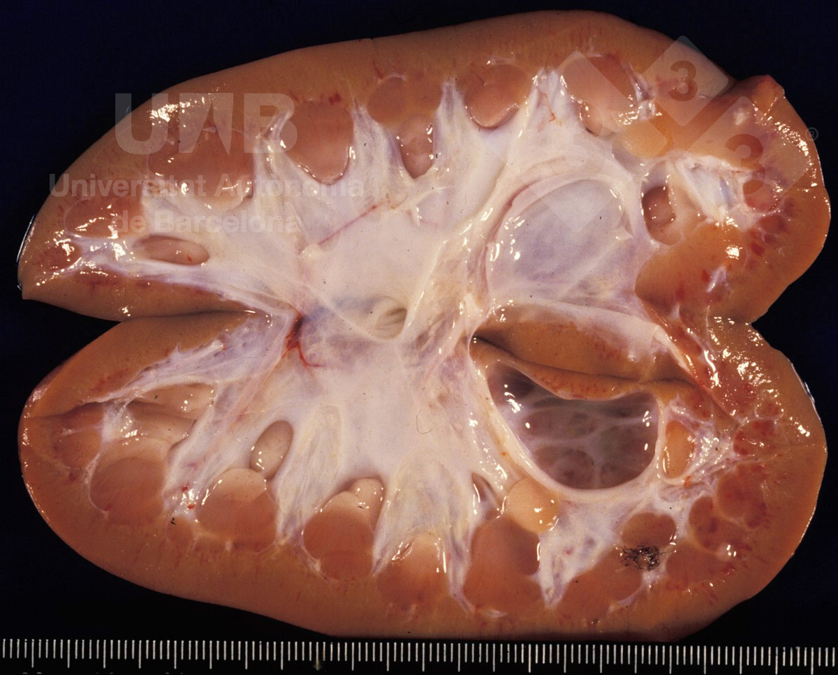 Les kystes rénaux sont découverts par hasard de façon commune chez le porc. A l'autopsie ou à l'inspection à l'abattoir on peut observer un ou plusieurs kystes uniloculaires d'un diamètre de 1 à 2 cm, parfois bilatéraux.