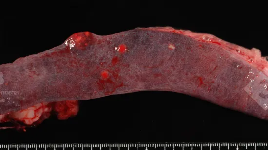 Ce porc de 50 kg est mort de streptococcie (Streptococcus suis 2) et voici l'aspect de ses poumons à l'autopsie.Qu'en dites vous?