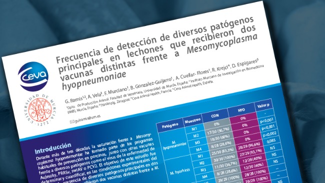 Frecuencia de detección de diversos patógenos principales en lechones que recibieron dos vacunas distintas frente a Mesomycoplasma hyopneumoniae