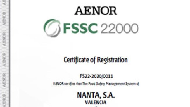 Nanta consigue ser la primera empresa española en lograr la certificación de seguridad alimentaria FSSC 22000, dentro de la categoría Production of Feed, para ocho de sus fábricas en España y Portugal.