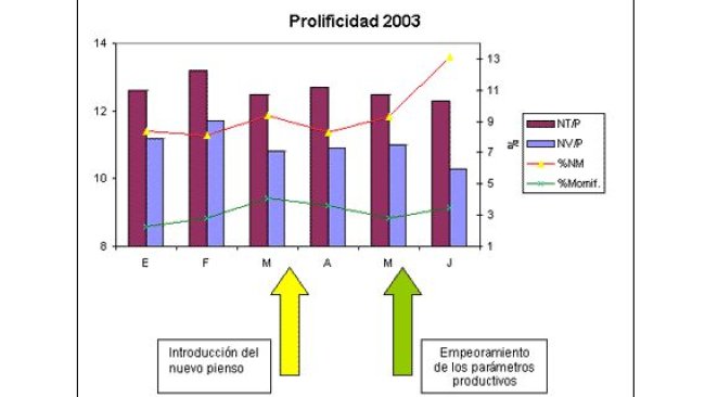 Durante la primavera de 2003, tres meses después de la introducción de los dos nuevos tipos de piensos, aparecieron algunos problemas en gestación y sobretodo en las salas de parto.