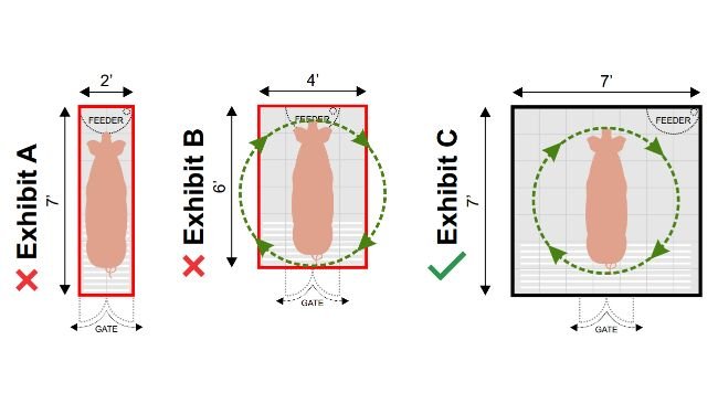 El Departamento de Alimentación y Agricultura de California ha publicado un documento de preguntas frecuentes y una guía del tipo de alojamientos para cerdas.