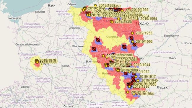 Uno de los brotes de PPA detectados recientemente se encuentra cerca de Kalisz, una región donde no se habían confirmados casos con anterioridad y no había necesidad de zonificación.