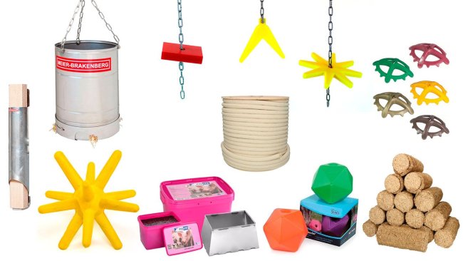 Aquí puedes comparar diversos objetos o juguetes usados como material de enriquecimiento con el objetivo de prevenir las mordeduras de cola en cerdos.