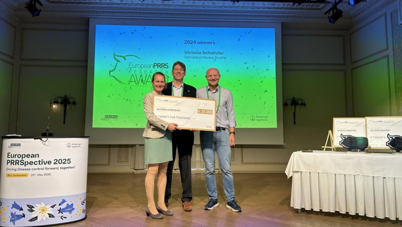 En nombre del comité de revisión, Nicolai Weber (Danish Agriculture & Food Council) fue el encargado de hacer entrega de los premios a las tres propuestas de investigación elegidas para impulsar el desarrollo de métodos prácticos para el control del PRRS y reconocer los logros científicos en este campo. Los European PRRS Research Award 2024 recayeron en Victoria Schnitzler (Vetmeduni) con “New diagnostic approaches to detect PRRSV in different sampling materia“, Olivier Bourry (Swine Virology Immunology Unit, ANSES Ploufragan Laboratory) con “Evaluation of the airborne transmission of two PRRSV-1 strains of different virulence levels and of an affordable filtration system to prevent this transmission“ y Marina Meeser (Department of Population Health Sciences, Faculty of Veterinary Medicine in Utrech University) con “IMPACT: Introduction on mutations of PRRSv? – Advise for Control using advanced geneTic analyses“, quienes recibieron 25.000 € cada uno para desarrollar sus trabajos de investigación.