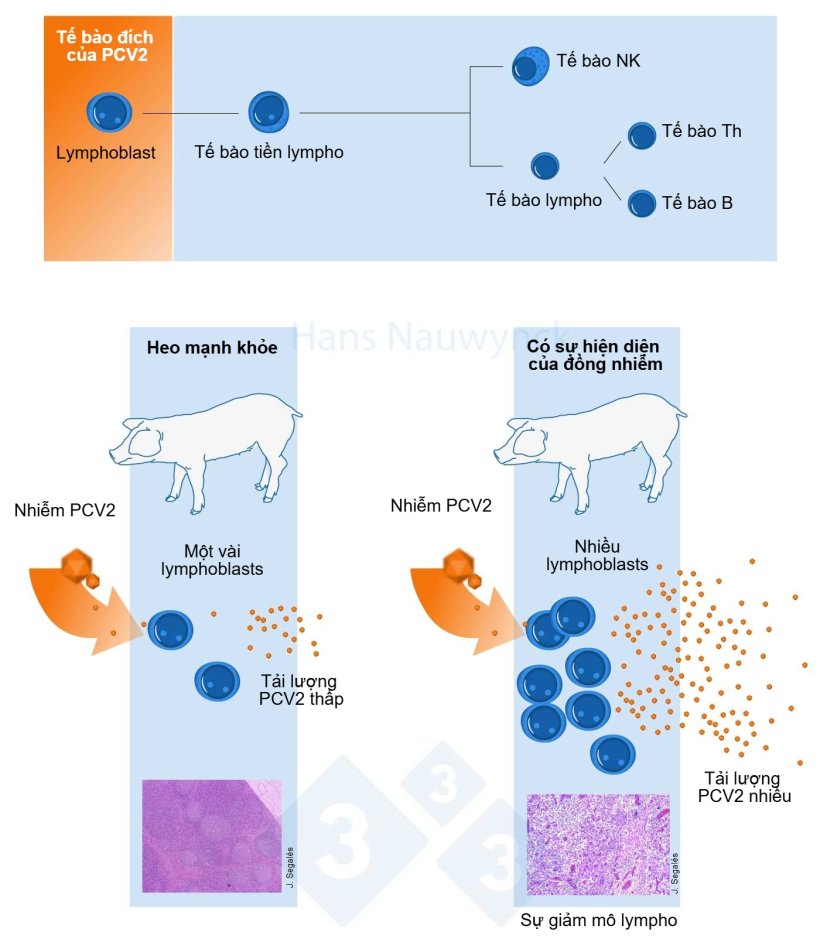 Như giáo sư Hans Nauwynck đã giải thích trong các bài viết trước của ông, "Hiểu biết virus từ cấp độ tế bào đến trang trại" và "Điều gì đang thúc đẩy sự tiến hóa của PCV2?", virus PCV2 nhân lên trong các lymphoblast – tức các tế bào lympho được kích hoạt bởi hệ miễn dịch.