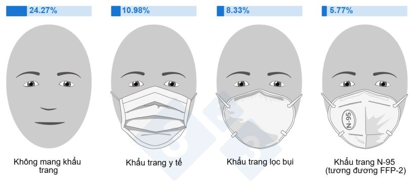 Tuy nhiên, chúng tôi không quan sát thấy sự khác biệt rõ rệt giữa các loại khẩu trang khác nhau, mặc dù khẩu trang N-95 có phần chiếm ưu thế về mặt số liệu. Một điểm thú vị khác là công nhân lại ưa chuộng sử dụng khẩu trang y tế vì họ cho rằng loại này thoải mái hơn. Nghiên cứu này nhắc nhở chúng ta rằng cần cân nhắc đến sở thích của người lao động nhằm tối đa hóa việc sử dụng khẩu trang, ngay cả khi loại khẩu trang mà họ ưa thích không phải là loại hiệu quả nhất về mặt lý thuyết.