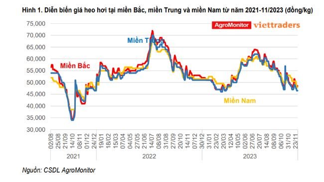 Tồn kho heo vẫn ở mức cao, cùng lượng heo chạy dịch vẫn đổ ra thị trường, trong khi tiêu thụ nội vùng lẫn đóng ra Bắc chậm khiến giá heo hơi khu vực miền Trung/miền Nam biến động yếu trong tháng 11 vừa qua.