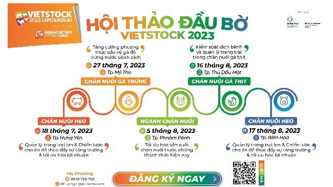 Trước thềm triển lãm vào ngày 11 – 13/10/2023, Vietstock chính thức khởi động 05 chương trình hội thảo chuyên ngành trong tháng 07 và tháng 08 tại các tỉnh chăn nuôi Hưng Yên, Tiền Giang, Bình Dương, Đồng Nai và đặc biệt là Phnôm Pênh, Campuchia.